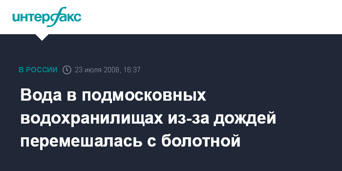 Москва. 23 июля. INTERFAX.RU - В связи с проливными дождями в Московском регионе вода в водохранилищах перемешалась с болотной водой, сообщил руководитель Мосводоканала Станислав Храменков на пресс- конференции в среду.