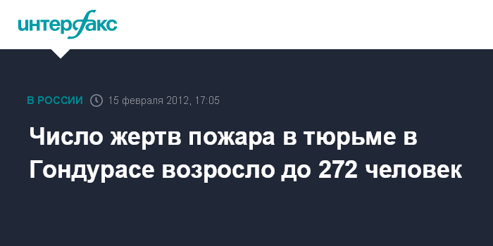 Мехико. 15 февраля. INTERFAX.RU - Пожар в тюрьме в департаменте Комаянгуа, в центральной части Гондураса, по последним данным, унес жизни более 270 человек, сообщили в среду местные власти.