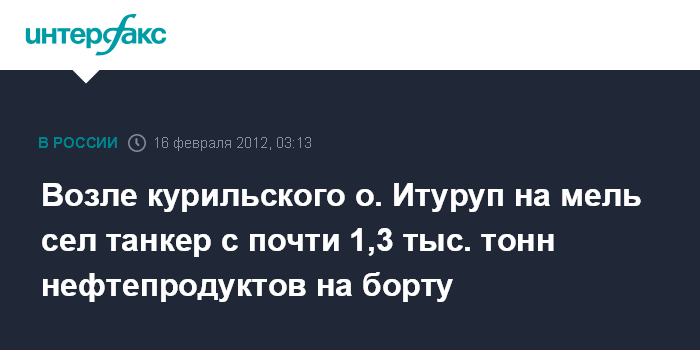 Южно-Сахалинск. 16 февраля. ИНТЕРФАКС-ДАЛЬНИЙ ВОСТОК - Танкер "Каракумнефть" с нефтепродуктами на борту вечером в среду выбросило на мель в 100 метрах от портпункта Курильск (о. Итуруп, Средние Курилы - ИФ), сообщили агентству "Интерфакс-Дальний Восток" в морском спасательном подцентре (МСПЦ) "Южно-Сахалинск" в четверг.