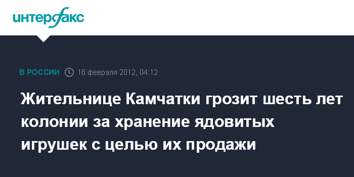Петропавловск-Камчатский.16 февраля. ИНТЕРФАКС-ДАЛЬНИЙ ВОСТОК - В суд передано уголовное дело в отношении 39-летней жительницы Петропавловска-Камчатского, обвиняемой в хранении с целью сбыта ядовитых детских игрушек.