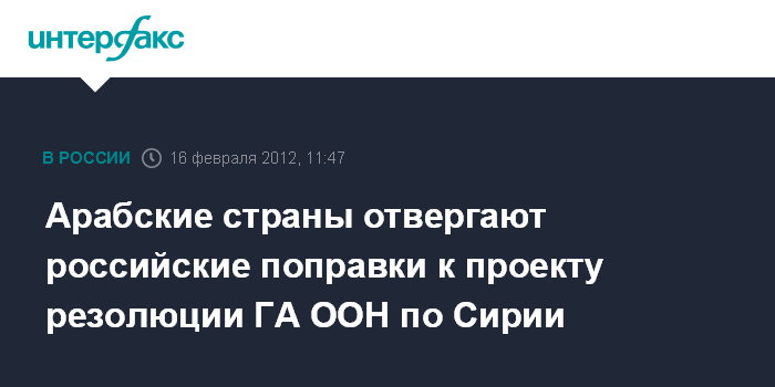 Нью-Йорк (ООН). 16 февраля. INTERFAX.RU - Делегации арабских стран в ООН не согласны с российскими поправками к проекту резолюции ГА ООН по Сирии, сообщили западные СМИ со ссылками на заявления дипломатических представителей в организации.