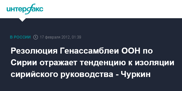 "Он (проект резолюции - ИФ) в большей степени является отражением вызывающей у нас обеспокоенность тенденции попытаться изолировать сирийское руководство, отказываться от каких-либо контактов с ним, навязывать извне формулу политического урегулирования", - сказал В.Чуркин, выступая на Генассамблее ООН после голосования.