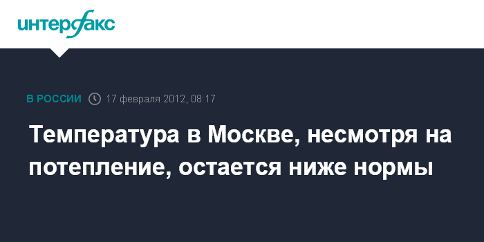 Москва. 17 февраля. INTERFAX.RU - В ближайшие дни в Москве, несмотря на отступившие сильные морозы, среднесуточная температура останется ниже нормы на 2-3 градуса, сообщили "Интерфаксу" в пятницу в Гидрометеобюро Москвы и Московской области.