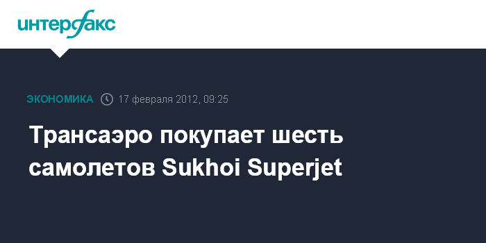 Трансаэро покупает шесть самолетов Sukhoi Superjet