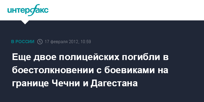 Пятигорск. 17 февраля. INTERFAX.RU - В пятницу утром на административной границе Чечни и Дагестана продолжилось боестолкновение с бандгруппами, по предварительной информации, двое полицейских погибли, сообщил агентству "Интерфакс-Юг" источник в правоохранительных органах.