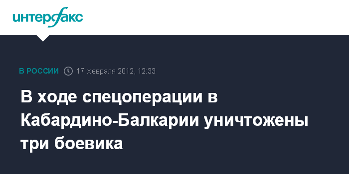 В ходе спецоперации в Кабардино-Балкарии уничтожены три боевика