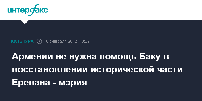 Между тем, руководитель управления информации и по связям с общественностью мэрии Еревана Артур Геворкян заявил "Интерфаксу", что утверждения азербайджанской стороны не нуждаются в комментариях. "У нас есть все необходимые проекты, чертежи и документы", - сказал он