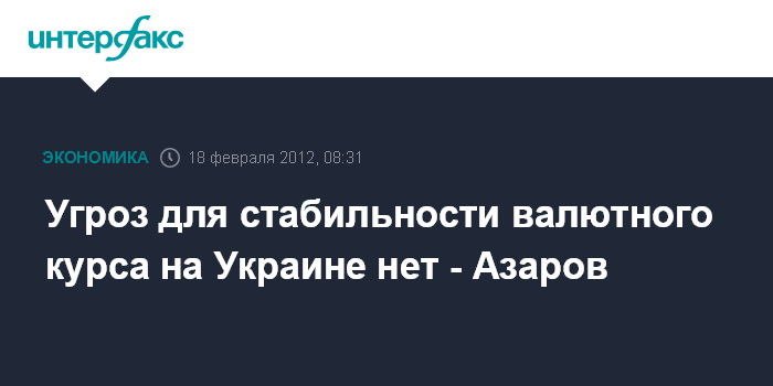Киев. 18 февраля. ИНТЕРФАКС-УКРАИНА - Никаких угроз для стабильности валютного курса на Украине нет, заявляет премьер-министр Украины Николай Азаров.