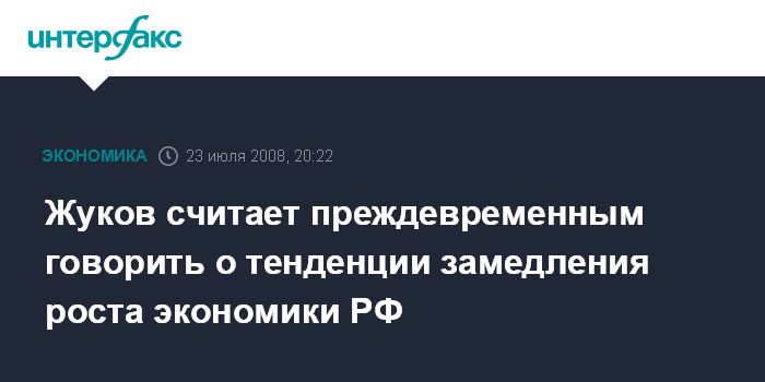 Жуков считает преждевременным говорить о тенденции замедления роста экономики РФ