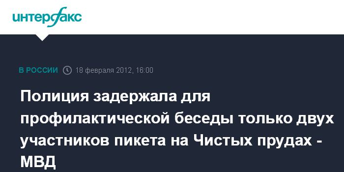 Москва. 18 февраля. INTERFAX.RU - Около 150 человек и еще 50 представителей СМИ и блогосферы посетили в субботу пикет на Чистых прудах в Москве, сообщили журналистам в пресс-службе столичного ГУ МВД РФ. "В мероприятии приняло участие около 150 человек, присутствовали еще около 50 представителей СМИ и блогосферы. В целом пикет прошел без происшествий. Однако двое несовершеннолетних попытались пронести на мероприятие файер, пневматический пистолет и нож", - отметили в пресс-службе. Несовершеннолетние, сообщили в столичном главке МВД, были доставлены в отделение полиции для профилактической беседы.