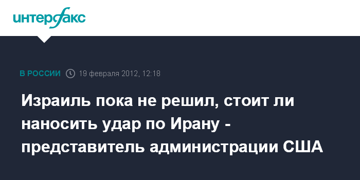 Израиль пока не решил, стоит ли наносить удар по Ирану - представитель администрации США