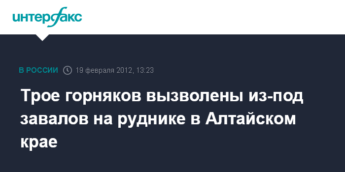 Трое горняков вызволены из-под завалов на руднике в Алтайском крае