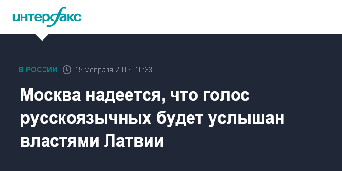 "Надеемся, что голос русскоязычного населения Латвии будет услышан как правящими кругами этого государства, так и международными организациями, призванными обеспечить выполнение общепринятых норм в области соблюдения законных прав и интересов национальных меньшинств", - говорится в комментарии официального представителя МИД РФ Александра Лукашевича , опубликованном на сайте в воскресенье.