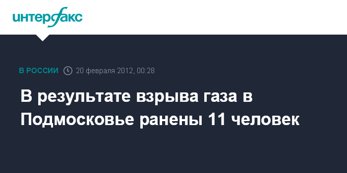 Москва. 20 февраля. ИНТЕРФАКС - 11 человек пострадали в результате взрыва газового баллона в подмосковных Горках-25, сообщил "Интерфаксу" начальник пресс-службы ГУ МВД России по Московской области Евгений Гильдеев.