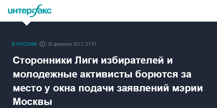 Сторонники Лиги избирателей и молодежные активисты борются за место у окна подачи заявлений мэрии Москвы
