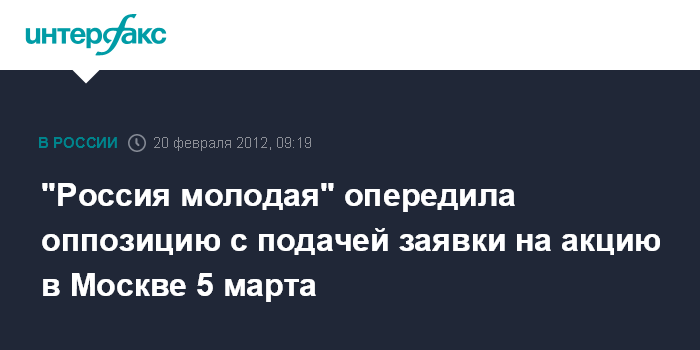 "Россия молодая" опередила оппозицию с подачей заявки на акцию в Москве 5 марта