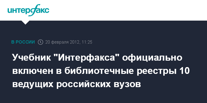 Учебник "Интерфакса" официально включен в библиотечные реестры 10 ведущих российских вузов