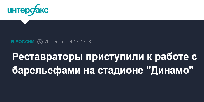 Москва. 20 февраля. INTERFAX.RU - На московского стадионе "Динамо" в понедельник начались реставрационные работы над легендарными барельефами советского скульптура Сергея Меркурова, сообщили "Интерфаксу" в пресс-службе проекта "ВТБ Арена Парк".