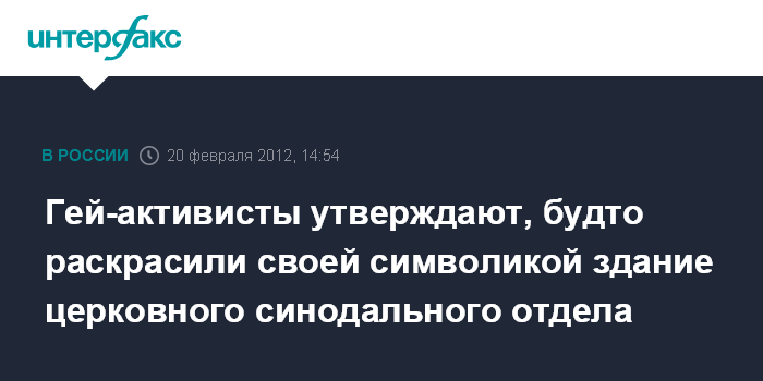 Москва. 20 февраля. INTERFAX.RU - Анонимные представители сексменьшинств заявили, что провели антицерковную акцию в Москве.