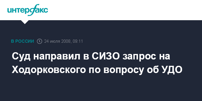Чита. 24 июля. INTERFAX.RU - Ингодинский районный суд Читы направил в следственный изолятор запрос о предоставлении материалов и характеристики на экс-главу НК "ЮКОС" (РТС: YUKO) Михаила Ходорковского для рассмотрения дела о его условно-досрочном освобождении.