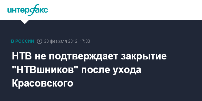 Москва. 20 февраля. INTERFAX.RU - На телеканале НТВ не подтвердили предположение тележурналиста Антона Красовского, что с его уходом передача "НТВшники" может закрыться.