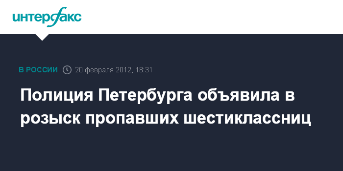 Санкт-Петербург. 20 февраля. INTERFAX.RU - Главное управление МВД по Петербургу и Ленинградской области просит горожан оказать содействие в розыске девочек, пропавших накануне в Невском районе.