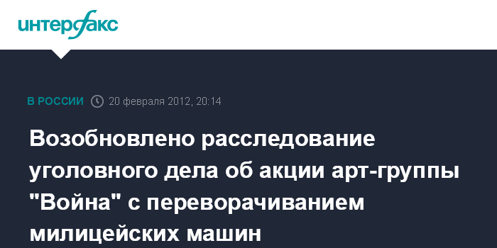 Возобновлено расследование уголовного дела об акции арт-группы "Война" с переворачиванием милицейских машин