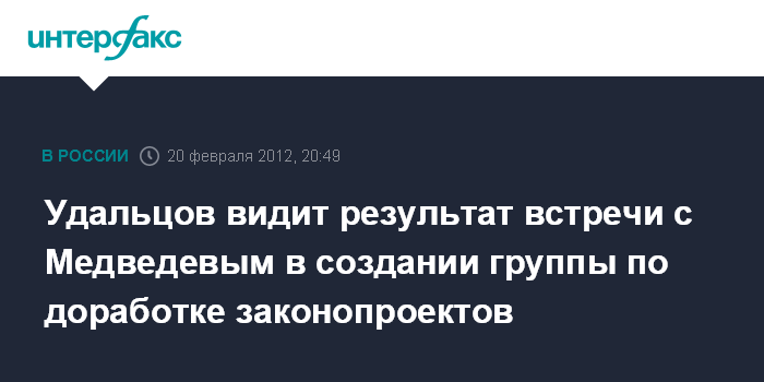 По словам Удальцова, "конкретный результат встречи в том, что создается рабочая группа под руководством Вячеслава Володина (первый замглавы администрации президента РФ - ИФ) по доработке внесенных в Госдуму законопроектов". "В эту группу войдут представители оппозиции, парламентских партий, и мы в ходе работы сможем как-то влиять на поправки в этих законопроектах", - сказал оппозиционер.