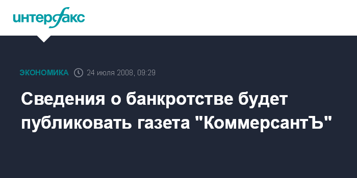 Сведения о банкротстве будет публиковать газета "КоммерсантЪ"
