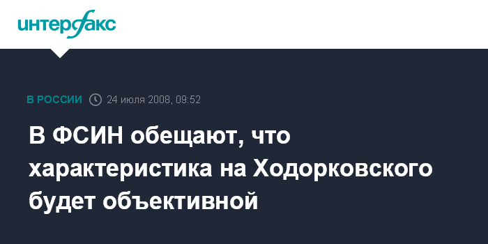 Москва. 24 июля. INTERFAX.RU - Характеристика на экс-главу НК ЮКОС Михаила Ходорковского для рассмотрения его дела об условно-досрочном освобождении (УДО) будет максимально объективной, заявили в Федеральной службе исполнения наказаний (ФСИН) РФ.