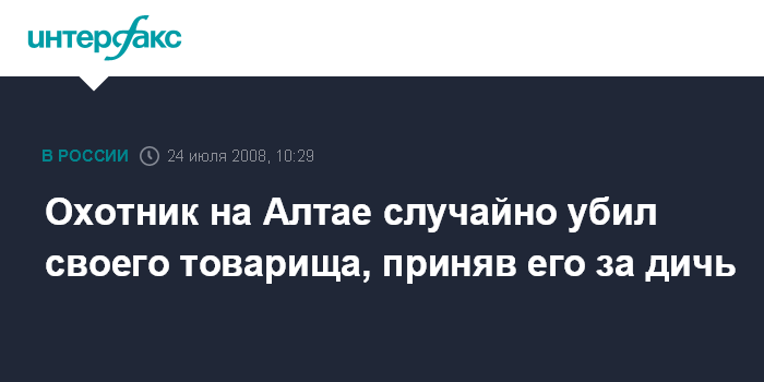 Москва. 24 июля. INTERFAX.RU - Уголовное дело по факту неосторожного убийства охотником своего товарища возбуждено в Алтайском крае.