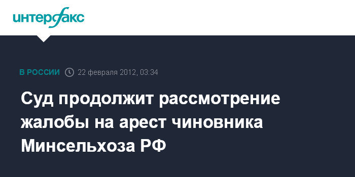 Суд продолжит рассмотрение жалобы на арест чиновника Минсельхоза РФ