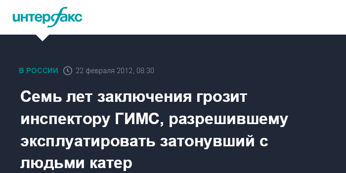 Семь лет заключения грозит инспектору ГИМС, разрешившему эксплуатировать затонувший с людьми катер