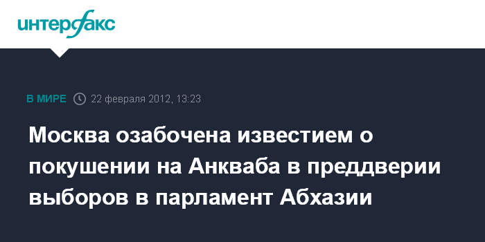 Москва. 22 февраля. INTERFAX.RU - МИД России заявляет, что покушение на президента Абхазии Александра Анкваба - это попытка дестабилизировать ситуацию в республике.