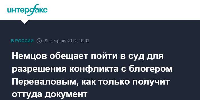 Немцов обещает пойти в суд для разрешения конфликта с блогером Переваловым, как только получит оттуда документ