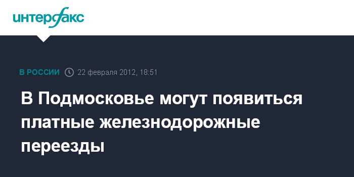 Красногорск. 22 февраля. INTERFAX.RU - Власти Московской области готовят программу строительства платных железнодорожных переездов, сообщил в среду министр транспорта региона Петр Кацыв в рамках онлайн-общения с жителями Подмосковья.