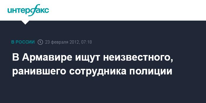 "Около 2:00 мск на одной из улиц Армавира участковый оперуполномоченный на своем маршруте окликнул для проверки документов неизвестного. Тот, вместо того чтобы предъявить документы, открыл стрельбу из травматического пистолета. В результате полицейский получил ранение и был госпитализирован", - сказал собеседник агентства.