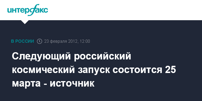 Москва. 23 февраля. INTERFAX.RU - Российская ракета-носитель "Протон-М" в конце марта запустит с космодрома Байконур американский телекоммуникационный спутник Intelsat 22. "Старт намечается на 25 марта", - сообщил "Интерфаксу-АВН" в четверг источник в ракетно-космической отрасли.