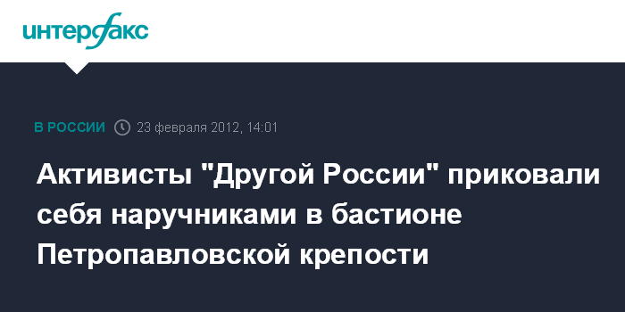 В свою очередь, в Петербургском отделении "Другой России" "Интерфаксу" сообщили, что акция была организована представителями указанного движения. По словам собеседника, приковавшие себя активисты требовали освободить политзаключенных.