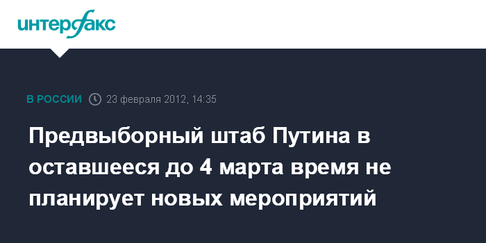 Предвыборный штаб Путина в оставшееся до 4 марта время не планирует новых мероприятий