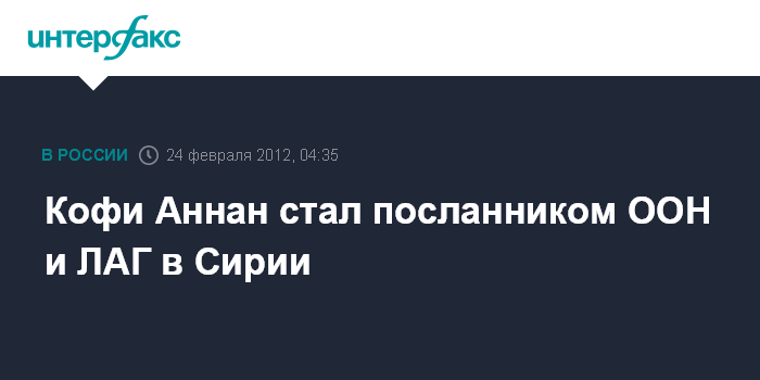 Лондон. 24 февраля. ИНТЕРФАКС - Бывший глава ООН Кофи Аннан назначен специальным посланником ООН и Лиги арабских государств (ЛАГ) в Сирии, передает Би-би-си.