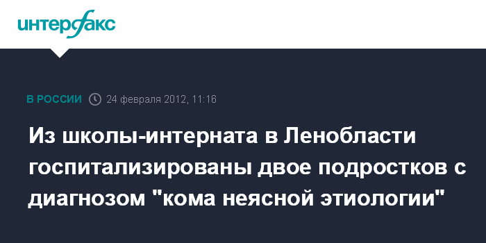Санкт-Петербург. 24 февраля. INTERFAX.RU - Полиция выясняет обстоятельства, при которых двое воспитанников школы-интерната в Волосовском районе Ленинградской области впали в кому, сообщил "Интерфаксу" в пятницу источник в правоохранительных органах.