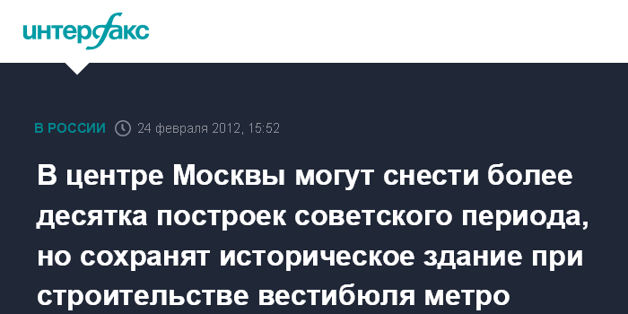 В центре Москвы могут снести более десятка построек советского периода, но сохранят историческое здание при строительстве вестибюля метро