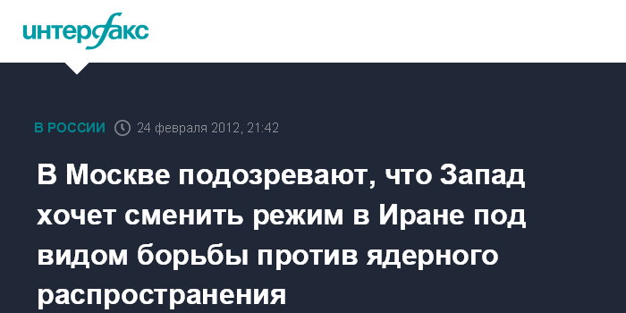 В Москве подозревают, что Запад хочет сменить режим в Иране под видом борьбы против ядерного распространения