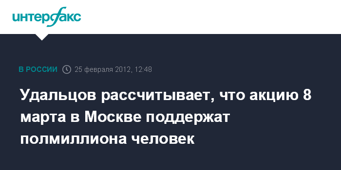 Удальцов рассчитывает, что акцию 8 марта в Москве поддержат полмиллиона человек