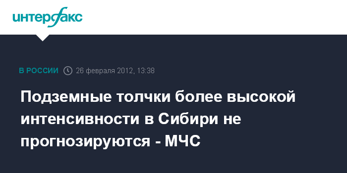Подземные толчки более высокой интенсивности в Сибири не прогнозируются - МЧС