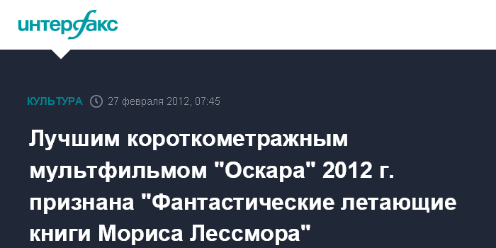Лучшим короткометражным мультфильмом "Оскара" 2012 г. признана "Фантастические летающие книги Мориса Лессмора"