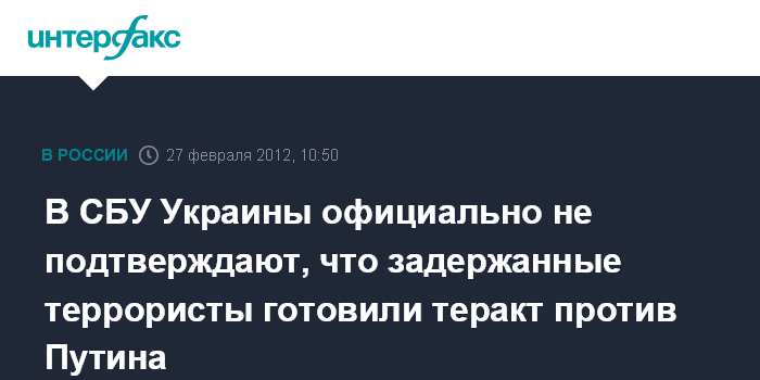 Одесса. 27 февраля. INTERFAX.RU - Управление Службы безопасности Украины в Одесской области пока официально не подтверждает, что задержанные в начале февраля в Одессе граждане Российской Федерации готовили теракт против премьер-министра Российской Федерации Владимира Путина.