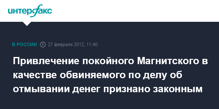 Привлечение покойного Магнитского в качестве обвиняемого по делу об отмывании денег признано законным