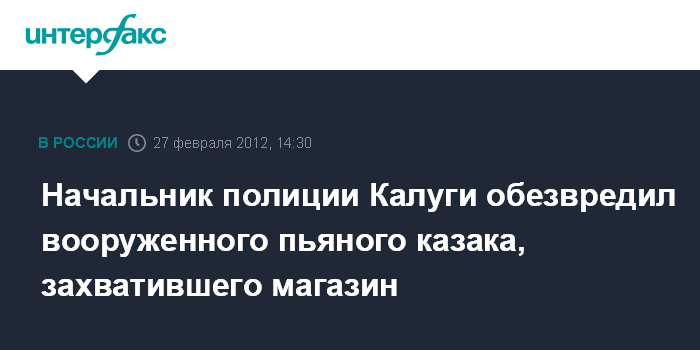 Начальник полиции Калуги обезвредил вооруженного пьяного казака, захватившего магазин